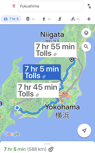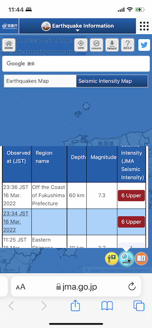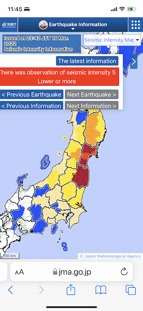 In this picture, we are the bottom blue dot. The prefecture where the epicenter was is at the top, north of Yokohama.